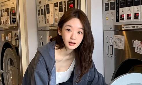 - 4.강민경, 일본 빨래방에서 털털한 꾸안꾸 미모! 트레이닝 후드 집업 애슬레저룩