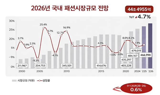 - 2026년 국내패션시장 -4.7% 감소한 44조4천955억 전...