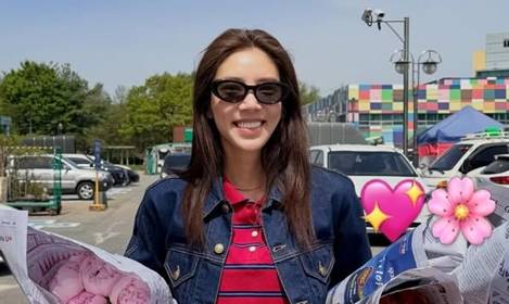 - 6.손담비, 꽃 보다 예쁜 청청! 기럭지 더 길어 보이는 롤업 하이웨이스트 데님 나들이룩