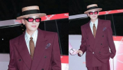 [패션엔숏] 지드래곤, 우주인과 악수! 밀집 모자 쓴 버건디 슈트 런칭 파티룩
