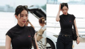 [패션엔숏] 에스파 카리나, 인형이 따로없네...공항 난리난 무심한 듯 시크한 블랙룩