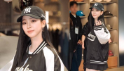 [패션엔숏] 에스파 카리나, 성수동이 발칵! 바시티 재킷으로 끝낸 야구장 데이트룩
