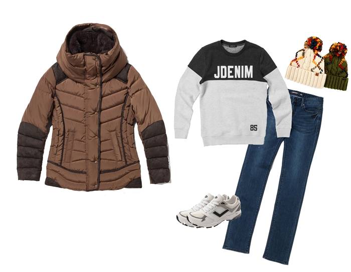 허리라인이 살아있는 패딩으로 여성미를 강조, 프린팅 맨투맨으로 발랄함 더해
