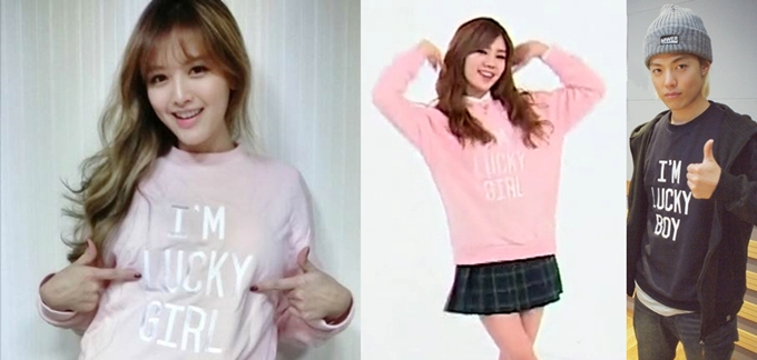 특히 MIB 멤버 강남은 화이트 티셔츠와 데님 팬츠로 편안하면서도 내추럴한 스타일링을 선보였다. 오렌지캬라멜 리지와 레인보우 재경은 딸기 우유 컬러의 아임럭키 맨투맨과 플리츠 미니 스커트를 매치해 러블리한 걸리시룩을 완성시켰다.