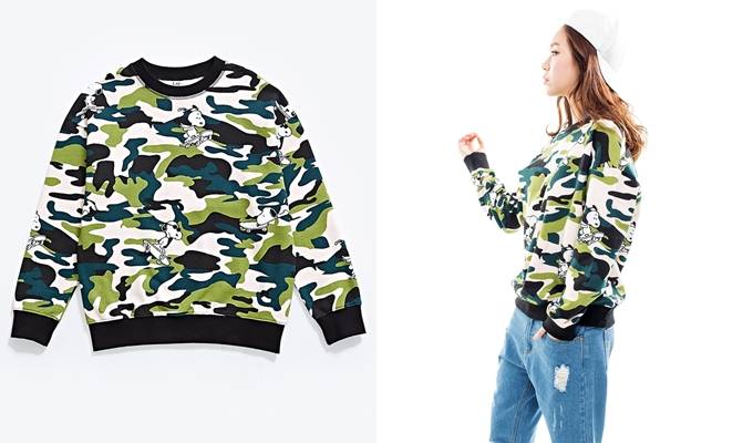< 사진 = 카모플라쥬 패턴이 인상적인 랩(LAP)의 스누피X랩 시리즈 스웨트 셔츠 >