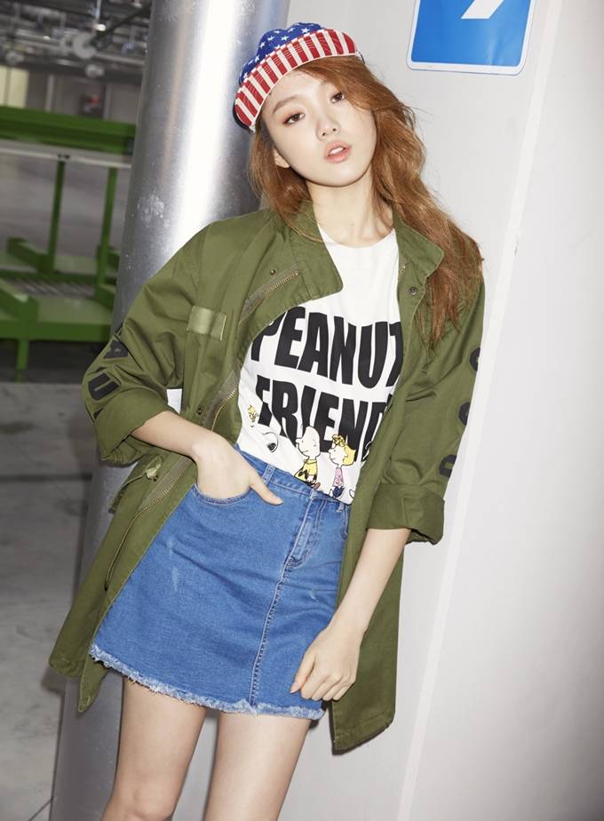여성 SPA 브랜드 「랩(LAP)」의 피너츠 콜라보레이션 야상 점퍼는 전체적으로 박시한 오버 사이즈에 카키 컬러가 조화를 이루는 야상 스타일로, 뒷면에 귀여운 스누피 캐릭터 자수가 그려져 있어 한층 발랄한 스타일링을 완성할 수 있다.