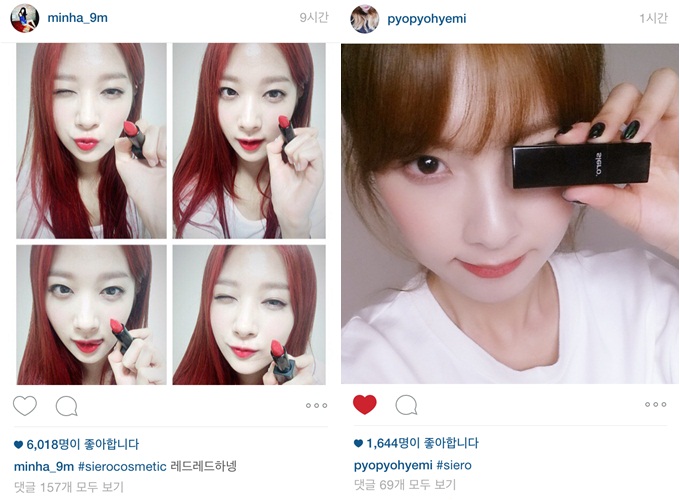 지난 18일과 24일 나인뮤지스 멤버 민하(@minha_9m)와 혜미(@pyopyohyemi)는 각각 개인 인스타그램 계정을 통해 본인들의 셀피를 1장씩 게재했다. 깜찍하고 발랄한 표정으로 한 손에 립스틱을 들고 있는 이들의 셀피는 한창 외모 꾸미기에 관심 많은 여느 20대들과 다름없는 모습으로 친근함을 자아냈다.