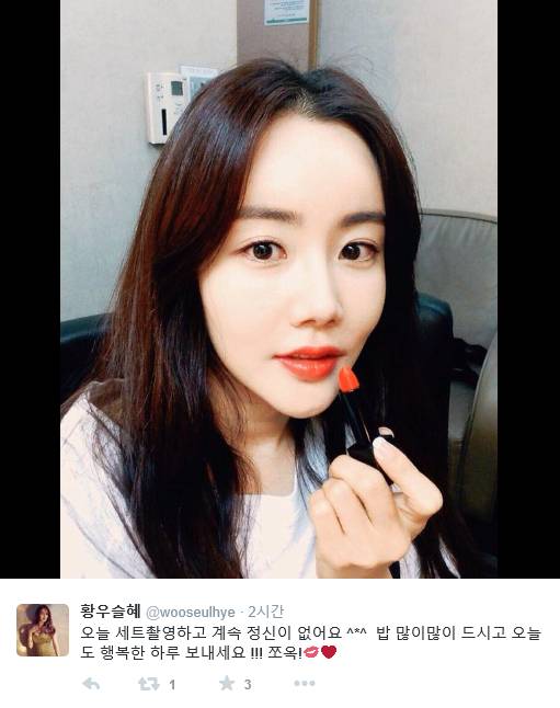 황우슬혜가 개인 트위터 계정을 통해 근황 사진을 공개했다.