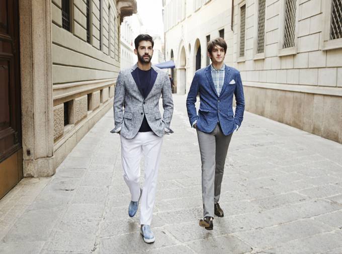 다소 가벼워 보이는 것이 염려될 땐 짙은 헹거치프와 블루 컬러 재킷으로 중후한 남성미 보여줄 수 있을 뿐만 아니라 격식을 갖춘 쿨비즈룩을 완성할 수 있다. 재킷을 벗었을 때는 자연스럽게 팔에 걸쳐 무심한 듯 멋스러운 분위기를 고조시켜주는 것도 좋다.