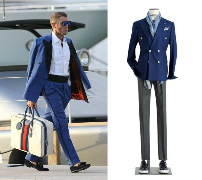 재킷을 선택해보자. 넓은 라펠은 더블 버튼과 어우러져 중후한 남성미를 고조시켜준다. 또한 고급스러운 블루 컬러가 스타일링에 활기까지 더하니 금상첨화. 이때