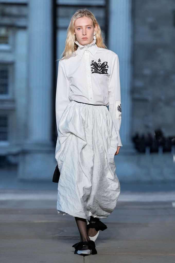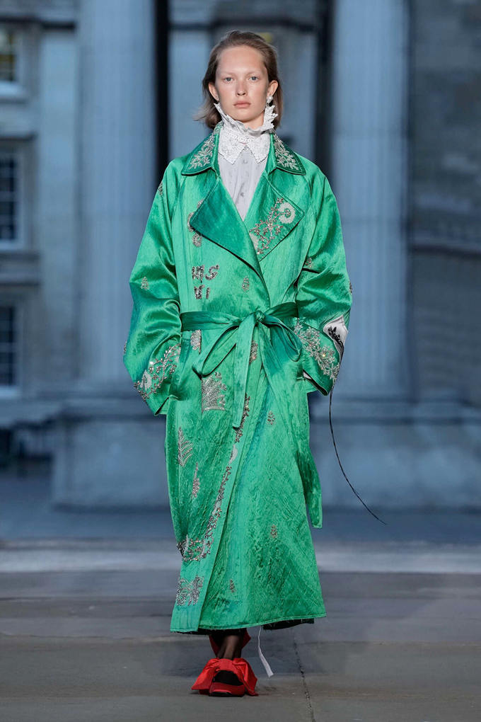에르뎀의 이번 컬렉션은 헬렌 스미스의 환영을 꽃 자수와 러플 장식의 하이 칼라 셔츠, 정교하게 재단된 블레이저, 크링클 팬츠 등 시간과 공간을 엮어 현대적인 컬렉션으로 형상화시켰다.