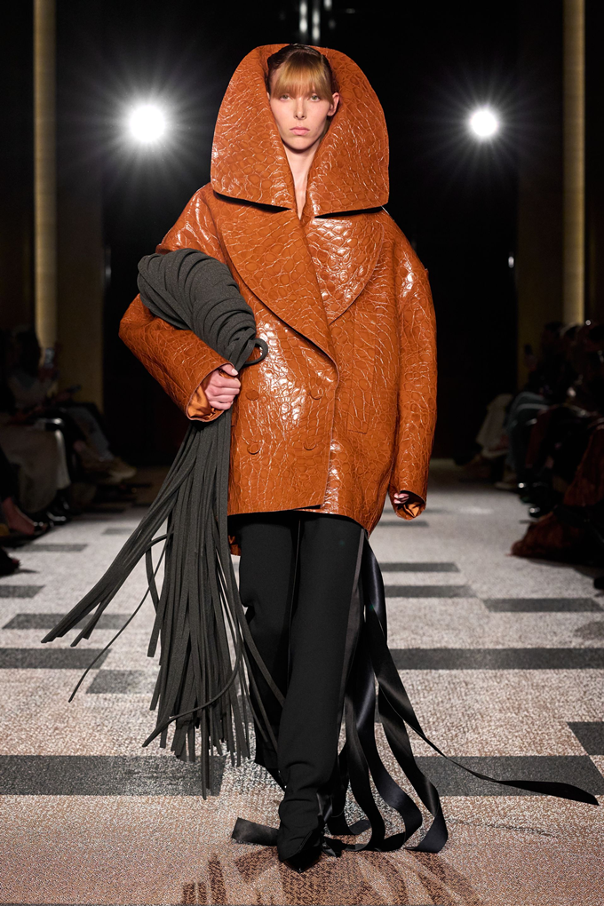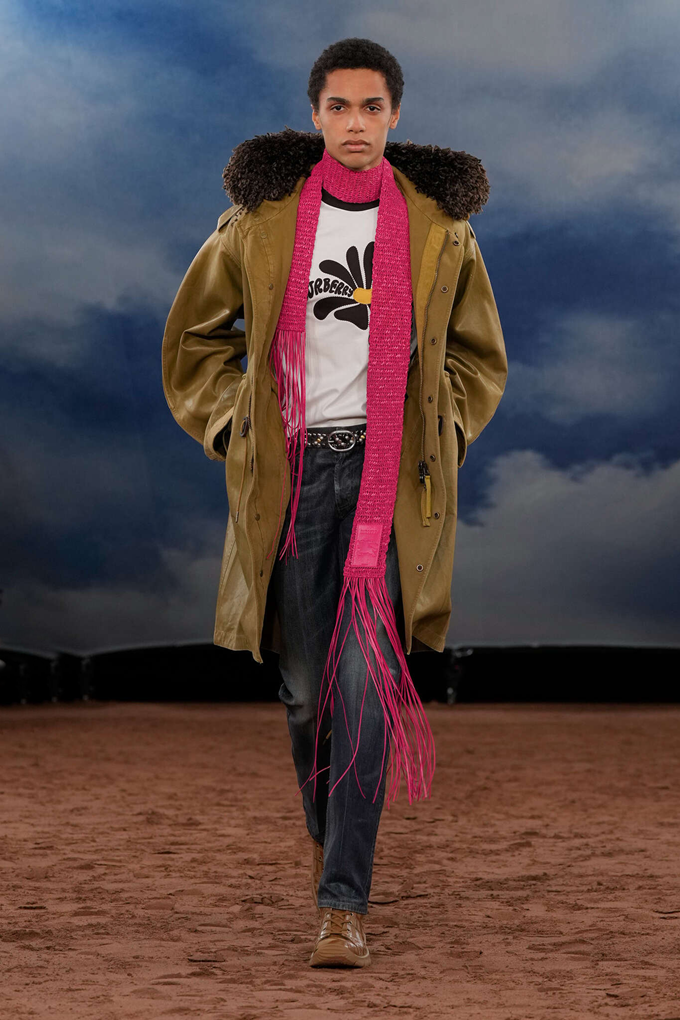 록산다는 재킷과 드레스에 긴 프린지 가닥으로 조각적인 실루엣을, 버버리는 길게 늘어뜨린 프린지 머플러, 프린지 백 등 펑크 미학의 클래식 프린지룩을 다수 선보였다. 이외에도 여밈라인과 소매단에 프린지 장식을 더한 가죽 코트룩을 선보였다.