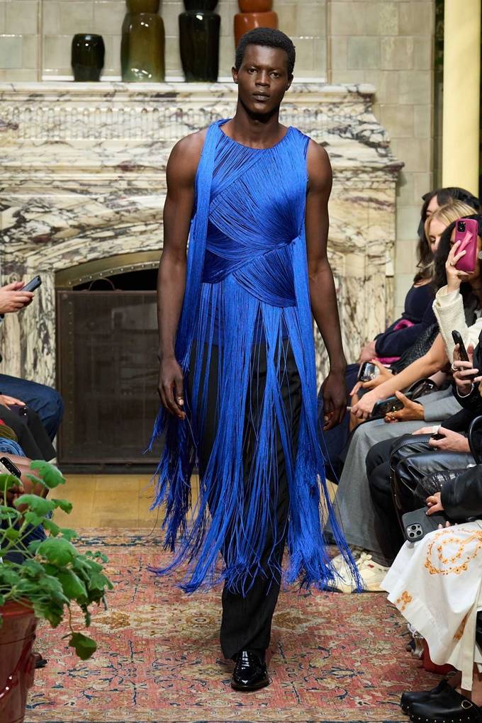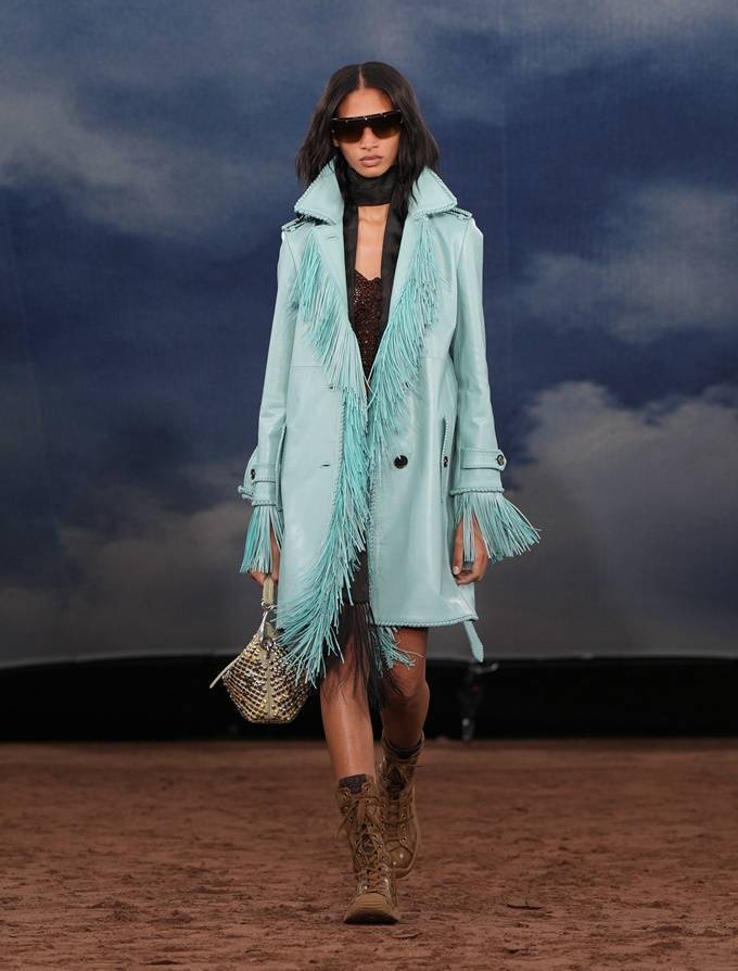 런던디자이너들은 가죽 프린지부터 니트웨어의 섬세한 가장자리 술까지 다양한 의상에 움직임과 질감을 만들어내며 역동적인 보헤미안룩을 선사했다.