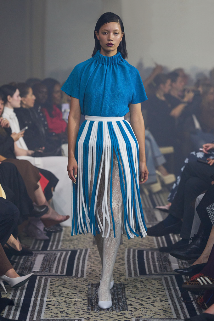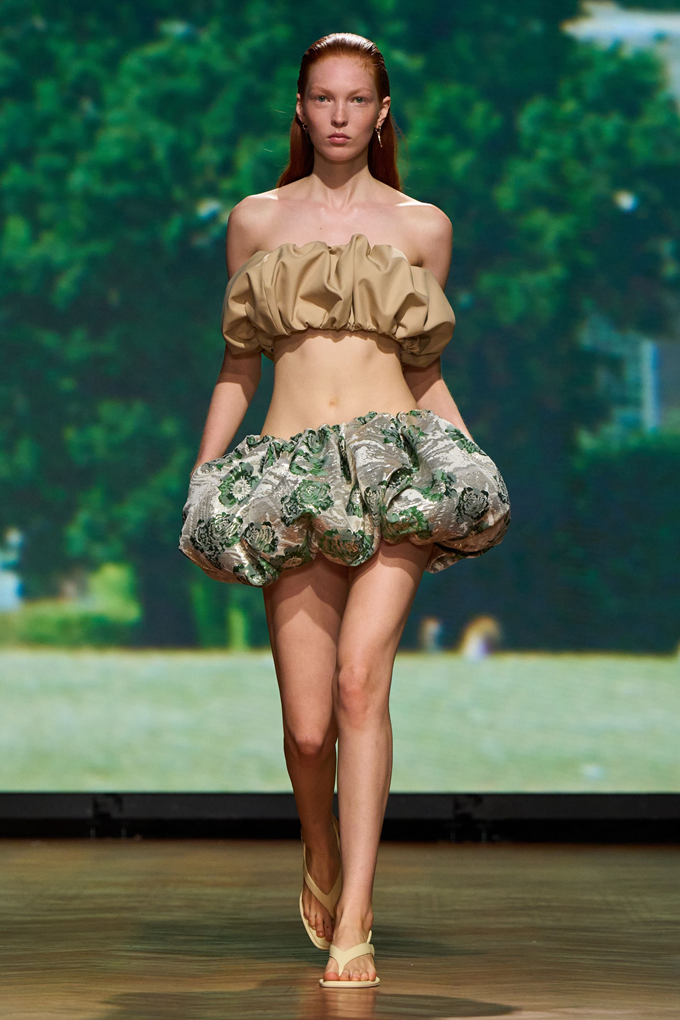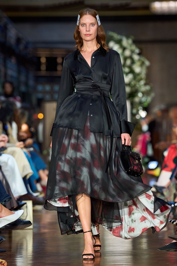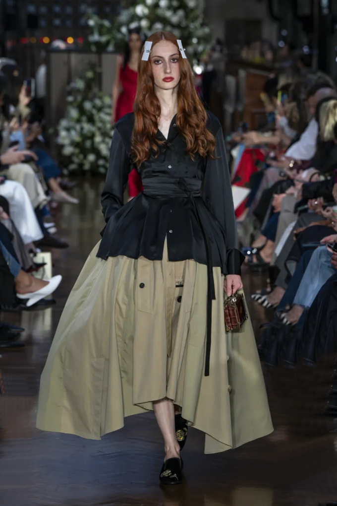 에르뎀은 마리 앙투아네트를 연상시키는 볼록하고 둥근 실루엣의 코르셋 미니 드레스를 선보였으며 시몬 시몬 로샤는 구조적인 언더스커트가 반투명 티어드 스커트와 조화된 훌라후프를 연상시키는 드라마틱한 후드 드레스룩을 대거 선보였다.