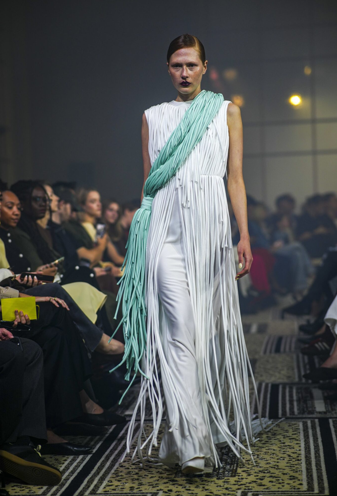 런던 패션위크에서는 머리부터 발끝까지, 즉 헤드기어부터 가죽 코트, 숄, 드레스, 스커트, 가방, 머플러, 신발에 이르기까지 거의 모든 패션 아이템에 프린지가 두루 적용됐다.