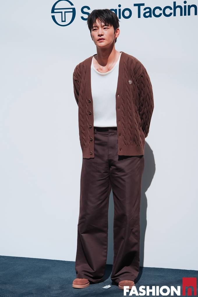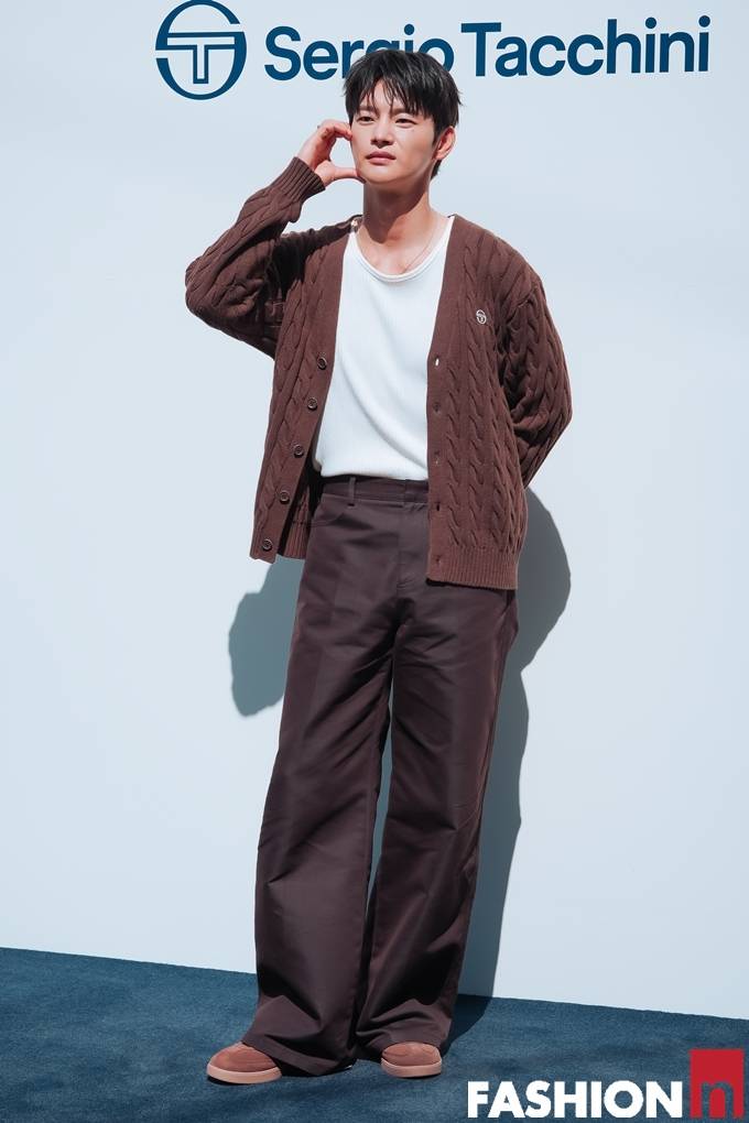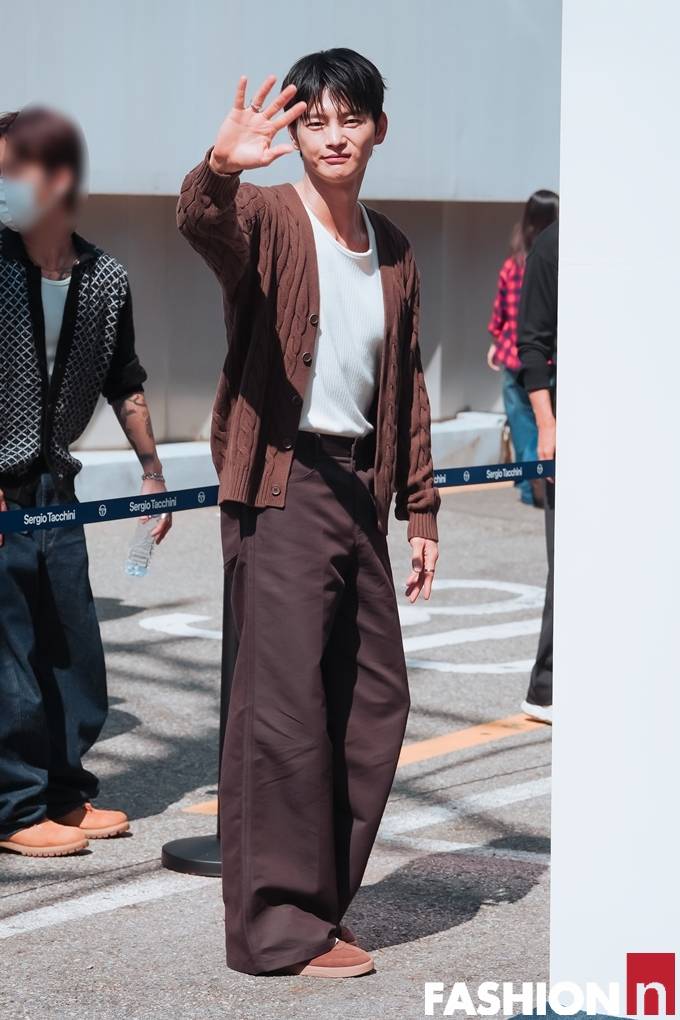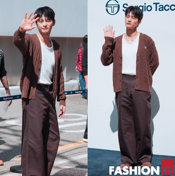 이날 서인국은 다크 브라운 컬러의 와이드핏 팬츠와 화이트 라운드 티셔츠에 브라운 케이블 니트 카디건을 걸친 꾸안꾸 스타일로 훈훈하면서도 댄디한 나들이룩을 완성했다.