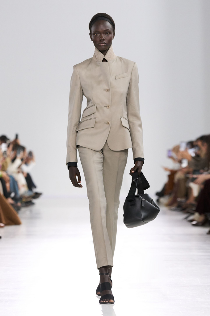 완벽하게 재단된 재킷과 낮게 걸친 팬츠는 이러한 분위기 속에서도 이번 컬렉션이 현재에 기반을 두고 있음을 강조한다.
