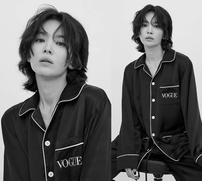 공개한 화보에서 송혜교는 헝클러진 헤어 스타일에 블랙 컬러의 실크 파자마룩으로 시크하면서도 고혹적인 분위기를 자아냈다.