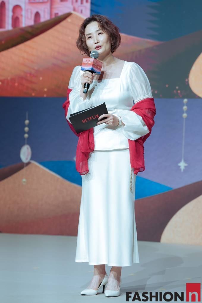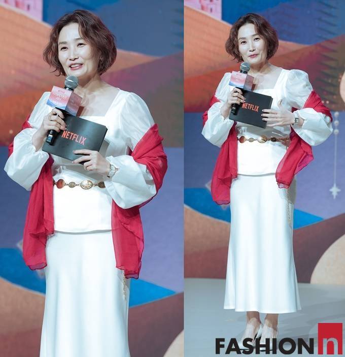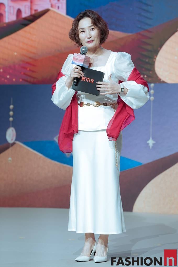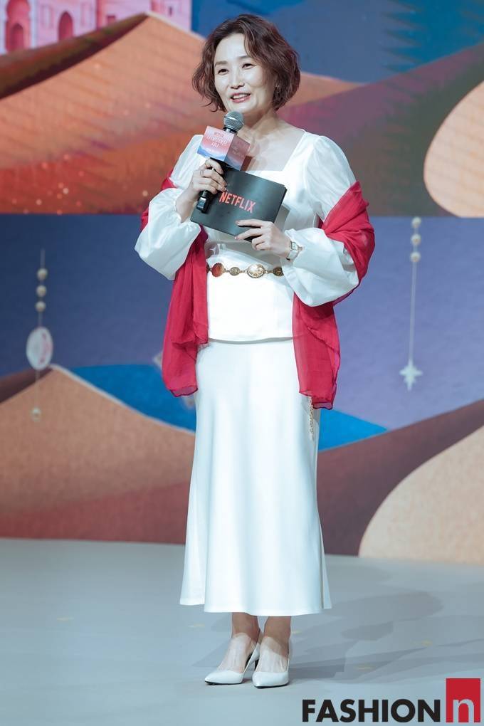 이번 제작 발표회는 배우 김우빈, 수지, 안은진, 노상현, 고규필, 이주영 등이 참석해 다양한 이야기를 나눴다.. 박경림은 이날 하늘하늘한 화이트 투피스와 강렬한 레드 머플러를 포인트로 여성스러운 MC룩을 연출했다.