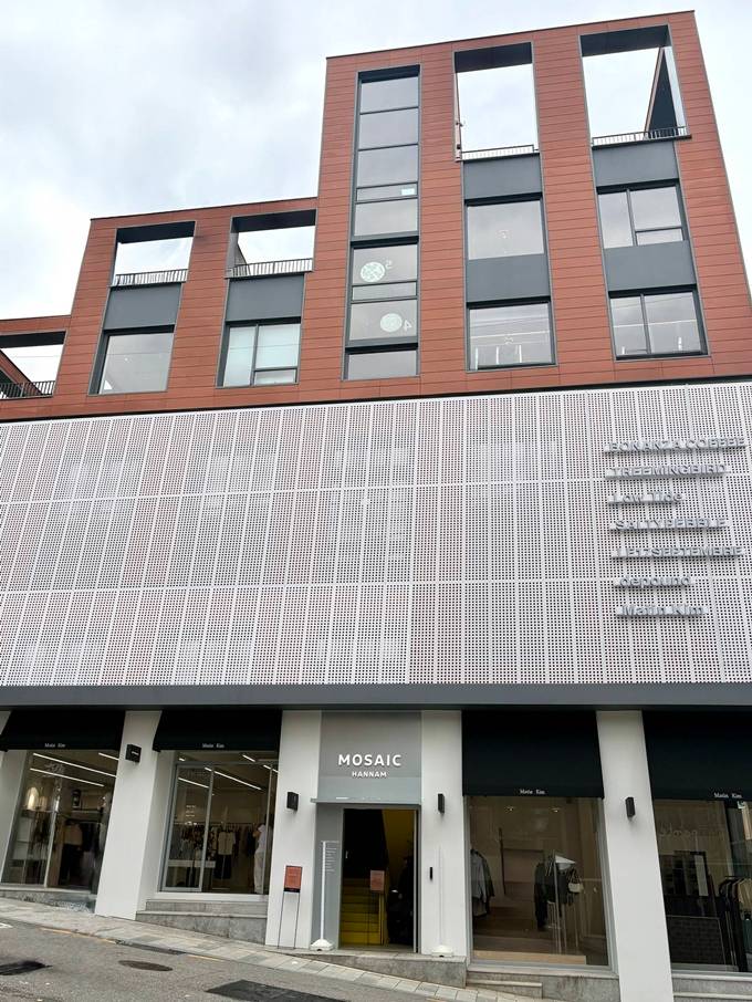 1층 마뗑킴을 비롯해 각 층에는 드파운드, 트리밍버드, 로우타이드, 르셉템버, 솔티페블 등 브랜드별 공간이 마련됐고 4층과 5층에는 독일 스페셜티 커피 브랜드 ‘보난자 커피’가 입점해 모자이크 한남의 고객 경험을 한층 더 확대했다.