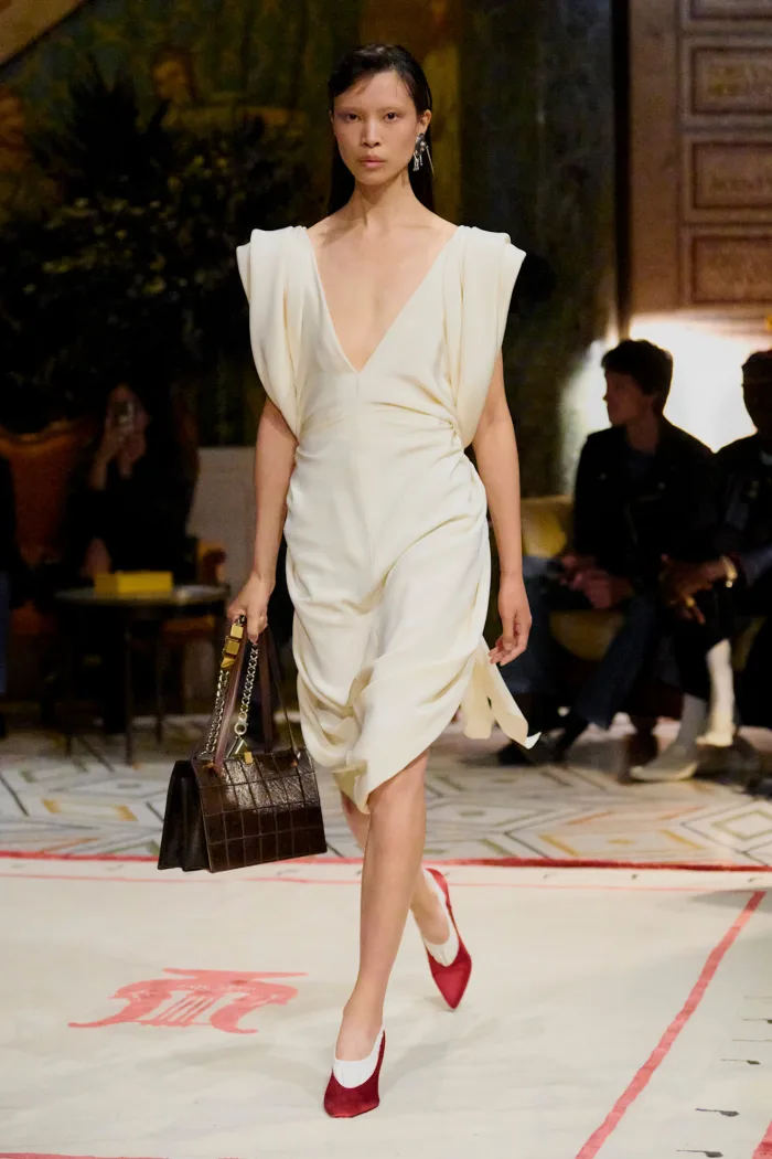 남성 룩에서는 드러난 상체와 질감 있는 소재가 만나 강렬한 관능미를 드러냈고 실루엣과 드레이프, 구조는 억제되지 않고 자유롭게 표현되며, 디테일 하나하나가 오늘날의 현실과 감각을 반영했다.