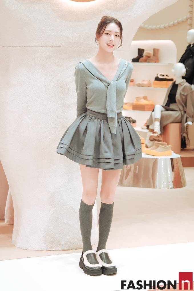 여깅 니하이 삭스와 퍼 디테일이 들어간 어그 슈즈를 더해 겨울 특유의 포근함과 귀여움을 동시에 담아냈다.