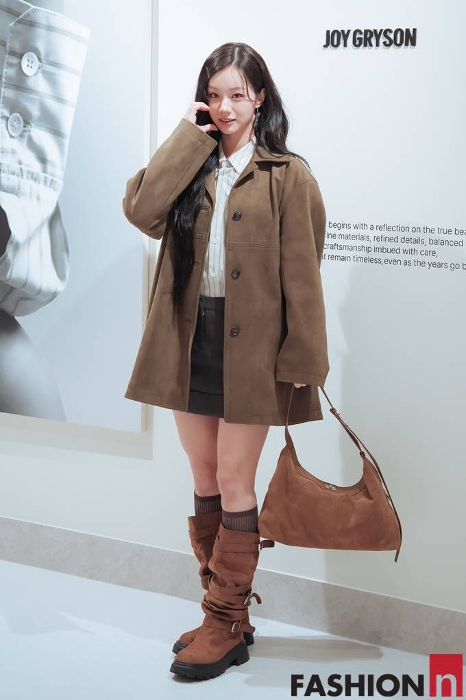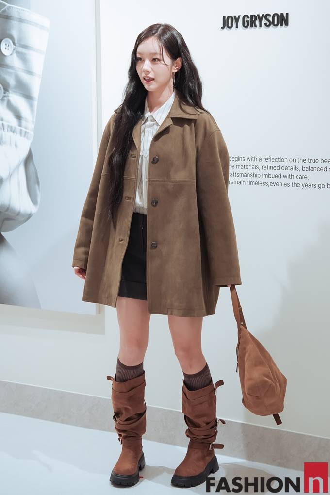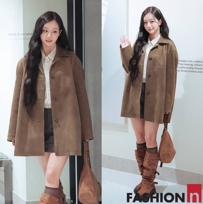 여기에 톤온톤 스웨이드 부츠와 백을 더해 통일감 있는 스타일링을 완성, 고급스럽고 따뜻한 무드를 배가시켰다.