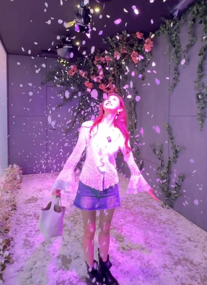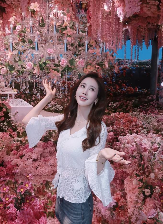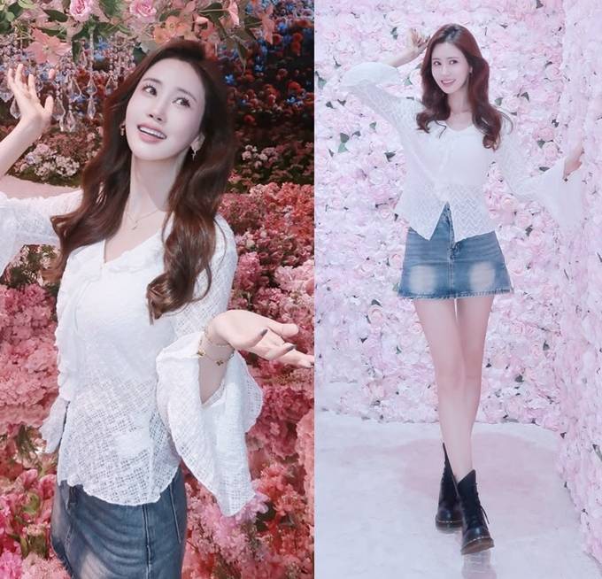 공개한 사진에서 이다해는 은은한 시스루 디테일의 화이트 블라우스에 데님 미니 스커트를 매치한 여행 데일리루으로 산뜻하면서도 여성스러운 분위기를 완성했다. 특히 벨 슬리브 디자인의 블라우스로 여리여리한 실루엣을 연출하며, 플라워 배경과 어우러져 로맨틱한 무드를 한층 배가시켰다.