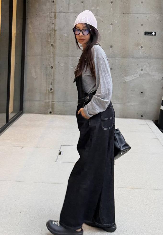 공개한 사진에서 황신혜는 그레이 톤의 긴팔 티셔츠에 블랙 와이드 핏 멜빵 팬츠를 매치해 체형을 자연스럽게 커버하면서도 세련된 실루엣을 완성했다.