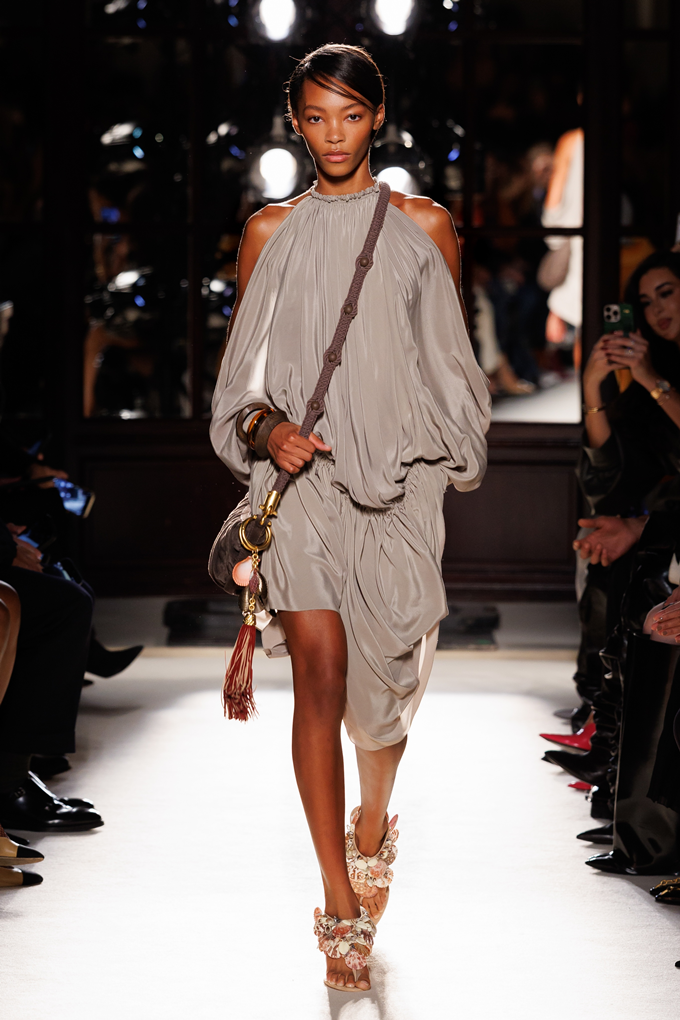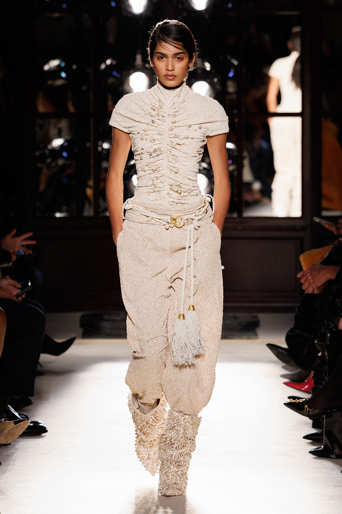 '감정의 연속성’을 주제로 섬세한 드레이프, 시스루, 구조적인 디테일, 흐르는 실루엣, 유기적인 소재가 완벽한 조화를 이루고 미니어처 조개껍질, 반짝이는 크리스털, 구불구불한 매크라메, 술 장식 가죽이 컬렉션에 질감, 차원, 볼륨을 더해 새로운 발망룩을 창조했다.