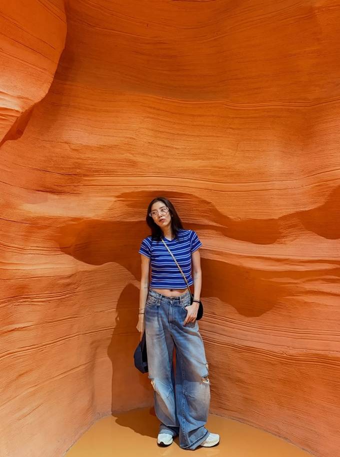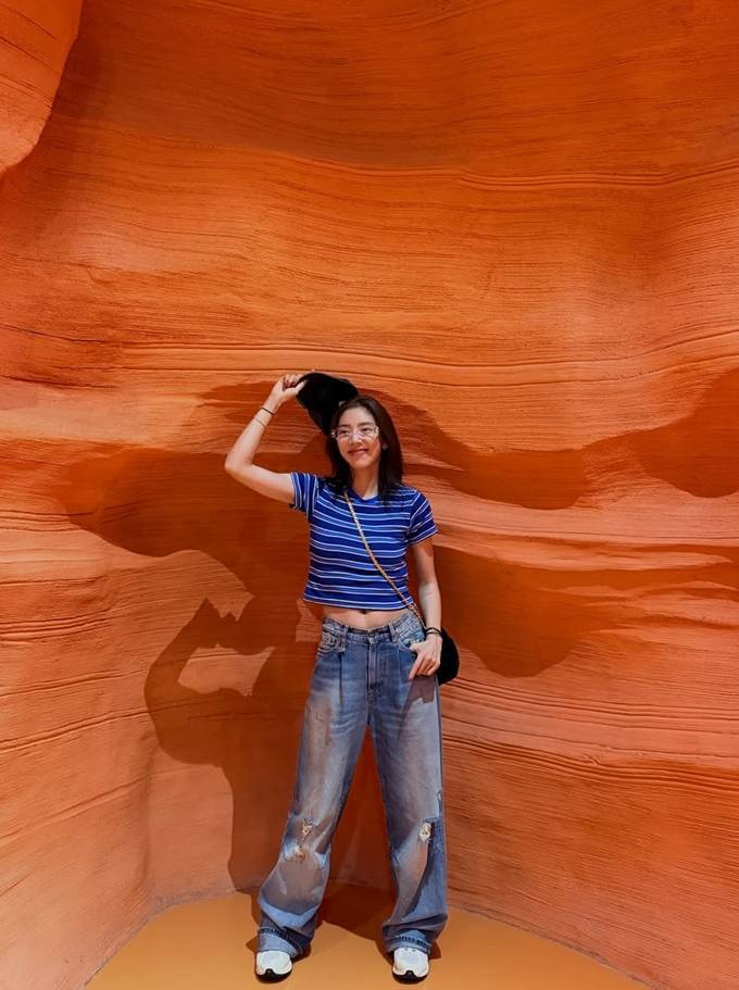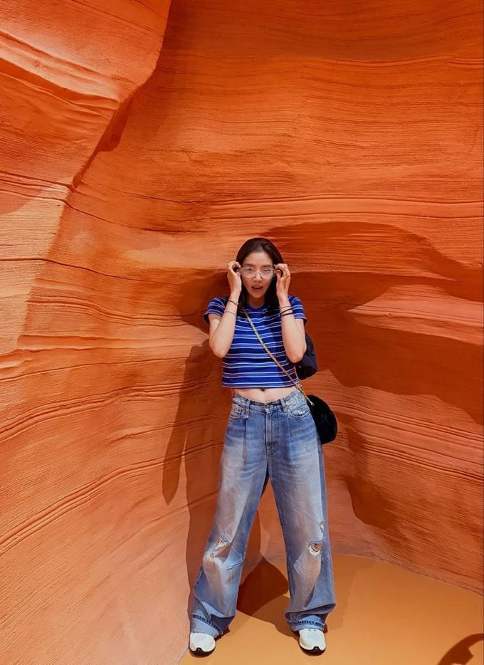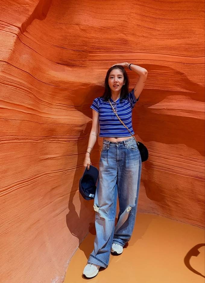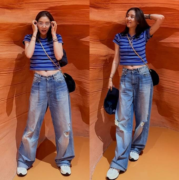 공개한 사진에서 손담비는 탄탄한 허리 라인을 과감히 드러낸 스트라이프 크롭티에 와이드 찢청 데님 팬츠를 매치해 청춘 감성 물씬 풍기는 데일리룩을 선보였다.