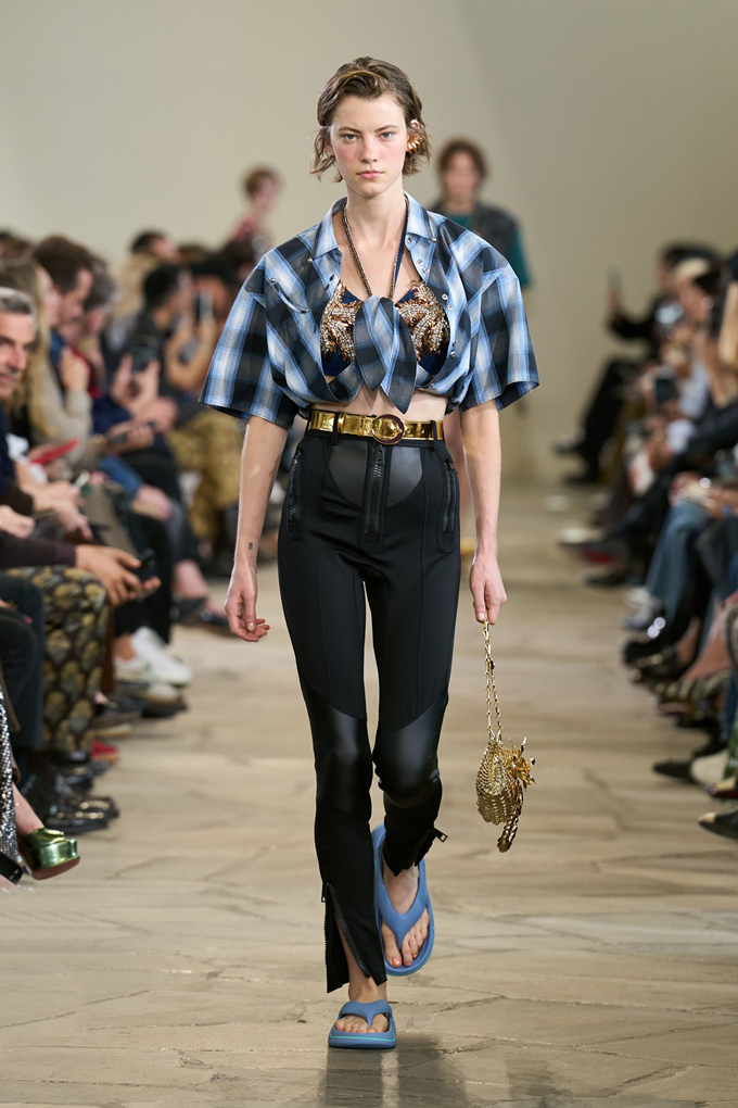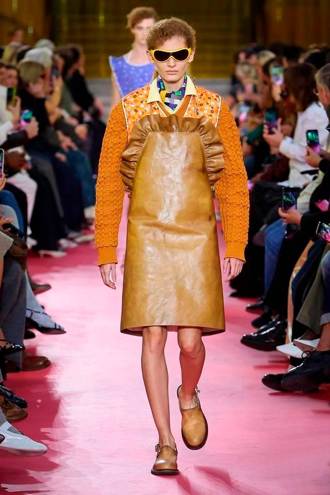 미우 미우는 공장에서 가정까지 역사 속 여성들의 고된 삶과 고통을 담고 있는 앞치마를 가죽, 캔버스, 레이스, 실크 클로케 등 예상치 못한 소재로 변주하며 책임감과 회복력으로 가득 찬 진정한 여성의 삶을 조명했다.
