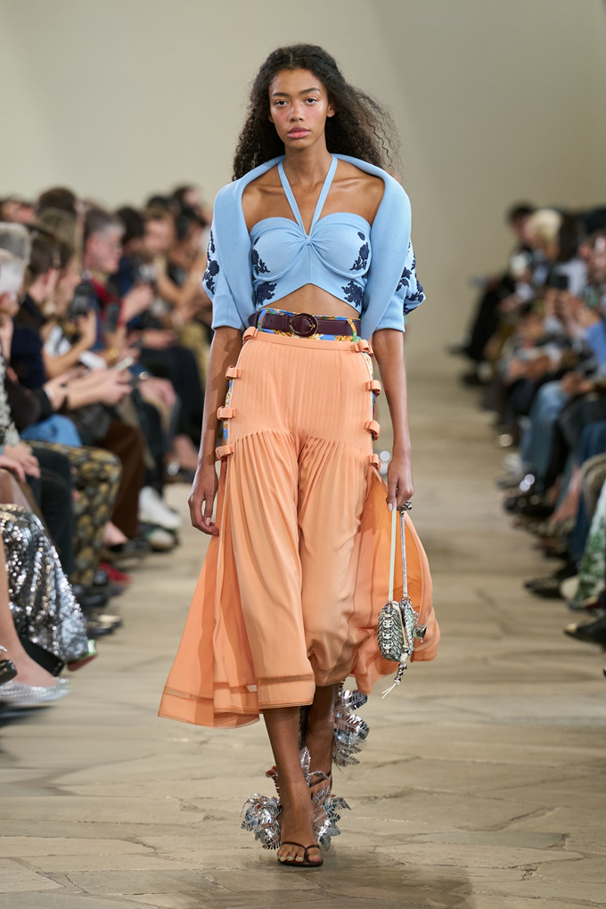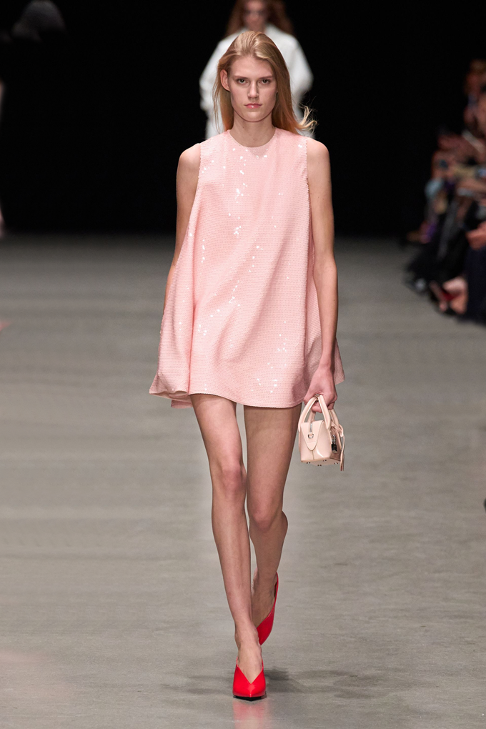 스텔라 매카트니는 오버사이즈 인조 모피 코트, 시어링 트리밍과 스팽글 장식 미니 드레스 등에 촉감 좋은 베이비 핑크를 과감하게 사용했다.