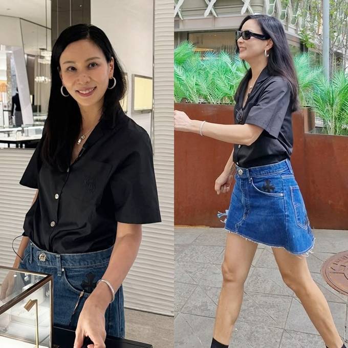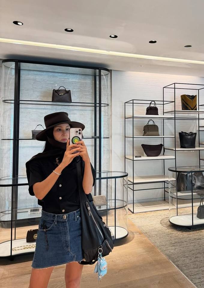 공개한 사진에서 고소영은 블랙 반오픈 셔츠에 미니 데님 스커트를 매치한 외출룩으로 심플하면서도 감각적인 스타일을 연출했다.