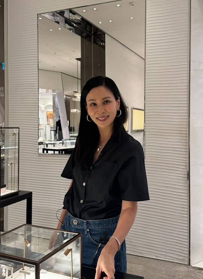 여기에 깔끔한 실버 주얼리와 블랙 선글라스로 포인트를 더하며, 여전히 모델 못지않은 비율과 동안 미모를 자랑했다.