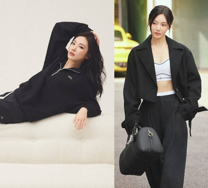 닝닝은 프리미엄 라이프스타일 브랜드 알로(ALO)와 캠페인 화보에서 미니멀한 블랙 앤 화이트 팔레트를 바탕으로 스포티한 무드에 럭셔리한 감각을 더해 심플하면서도 세련된 스타일을 완성했다.