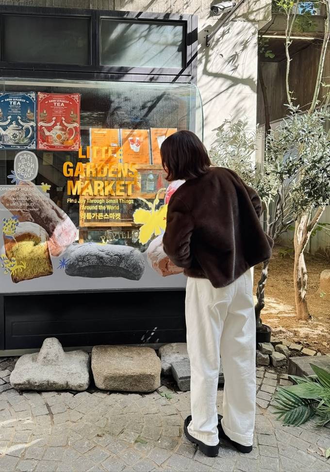 또 안에는 심플한 블랙 티셔츠와 화이트 팬츠를 매치해 감각적인 컬러 밸런스를 완성했다.