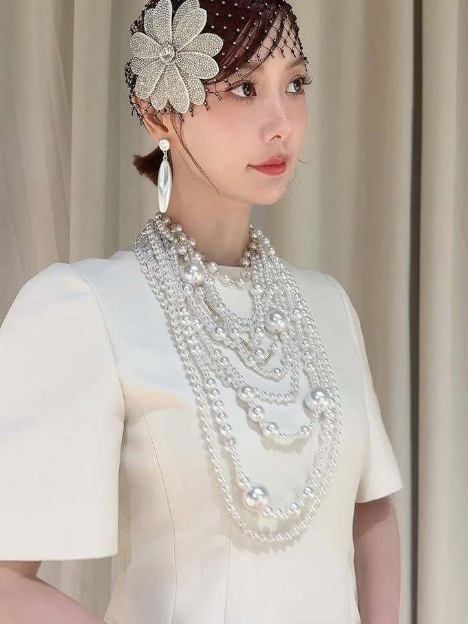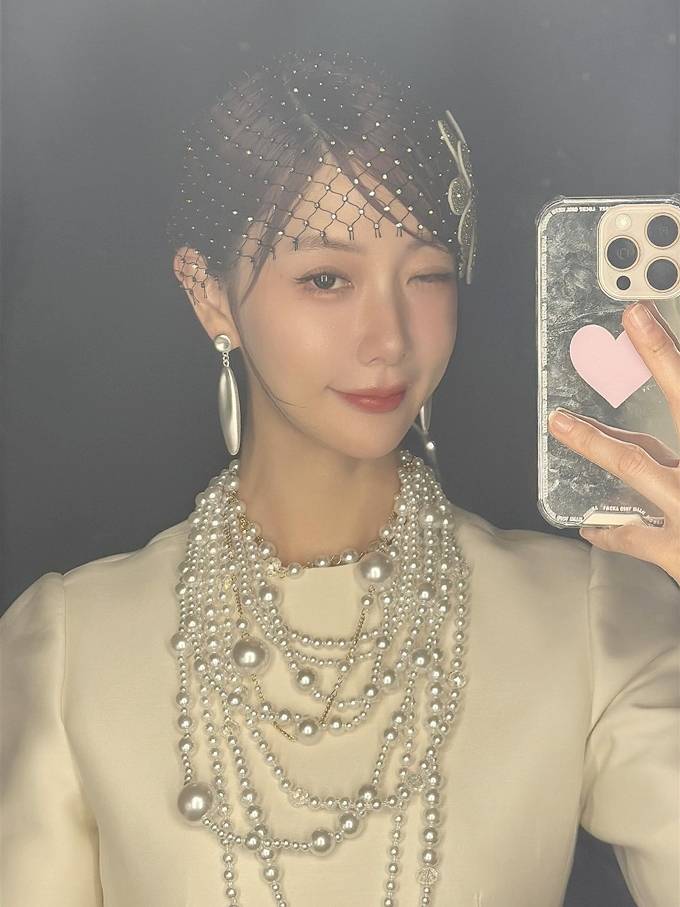 특히 클라라는 진주 레이어드 네크리스와 크리스털 플라워 헤어 액세서리로 화려함을 더하며 마치 ‘AI 인형’을 연상케 하는 비현실적인 비주얼을 선보였다.