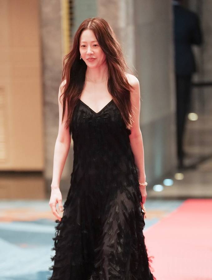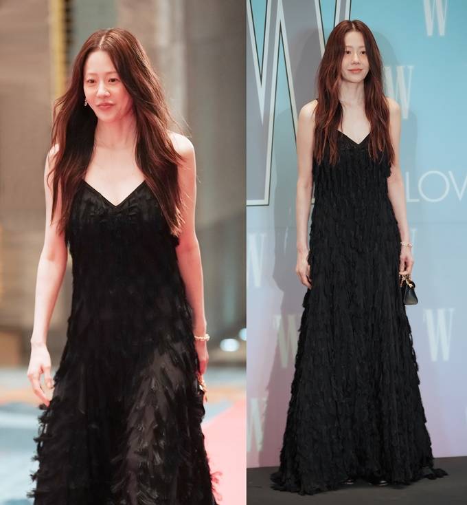 이날 고현정은 섬세한 깃털 장식이 더해진 브이넥 블랙 드레스룩으로 고혹적인 자태를 빛냈다.