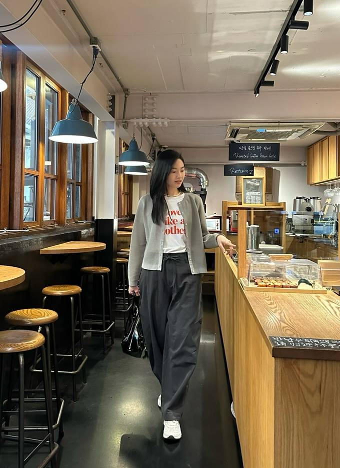 공개한 사진에서 류이서는 화이트 티셔츠 위에 밝은 그레이 컬러의 카디건을 매치해 산뜻한 느낌을 더했고, 루즈한 핏의 블랙 팬츠로 여유 있는 실루엣을 완성했다.