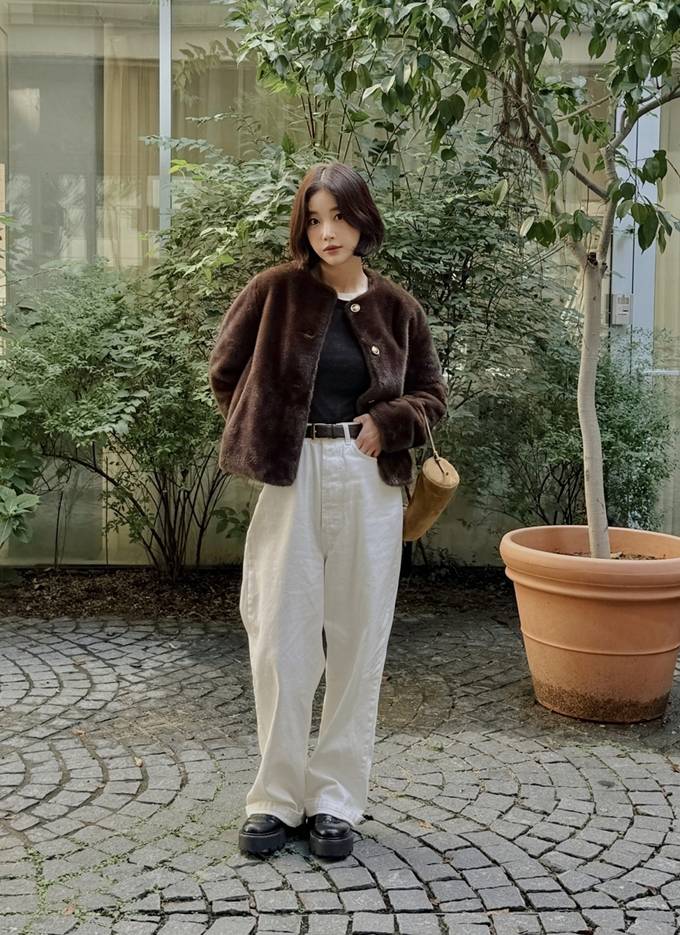 여성들의 워너비 스타일 아이콘으로 꼽히는 기은세는 브라운 컬러의 에코 퍼 재킷을 착장해 심플하면서도 트렌디한 데일리룩을 선보여 눈길을 끌었다.