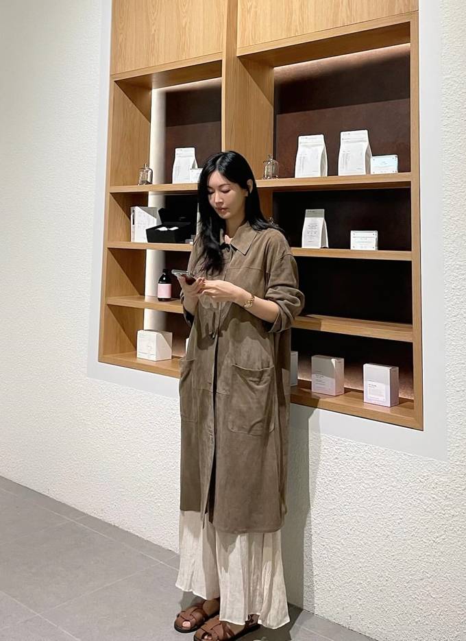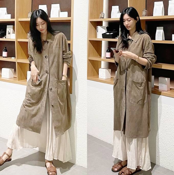 김소연, 스웨이드 롱 코트의 분위기 여신! 맥시 스커트와 꿀조합 감성 코트룩