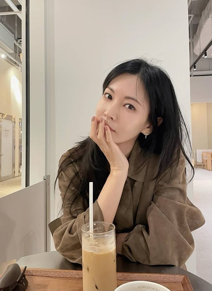 공개한 사진에서 김소연은 카키빛 스웨이드 셔츠 롱 코트에 아이보리 맥시 스커트를 매치해 우아한 실루엣을 완성했다.