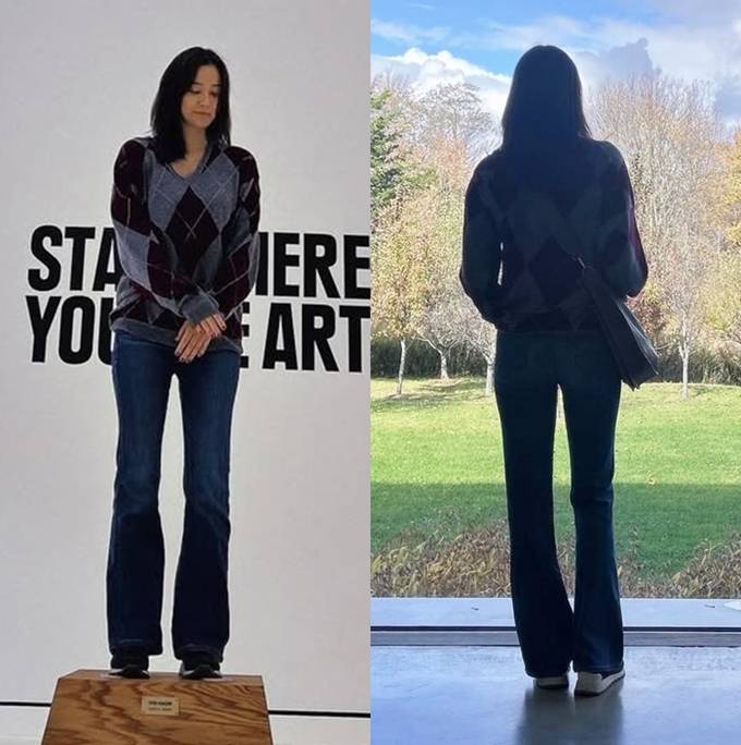 배우 손태영이 뉴욕에서 아가일 니트 스웨터를 입고 미술관 나들이를 즐겼다.