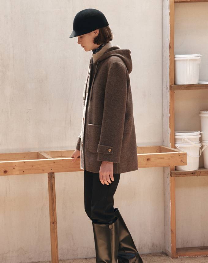 여성 트러디셔셔널 브랜드 '키이스(KEITH)의 후드 코트는 코트의 포멀함과 후디의 캐주얼함이 만난 일체형 스타일로 클래식하면서도 캐주얼한 분위기를 동시에 선사한다.