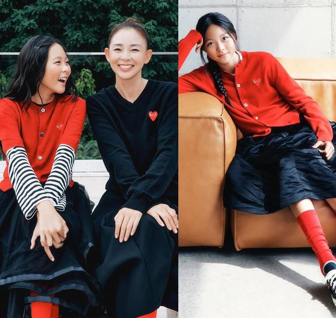 격투기 선수 추성훈과 일본 톱모델 야노시호의 딸 추사랑이 엄마와 함께 레드&블랙의 모녀룩으로 사랑스러운 매력을 한껏 발산했다.