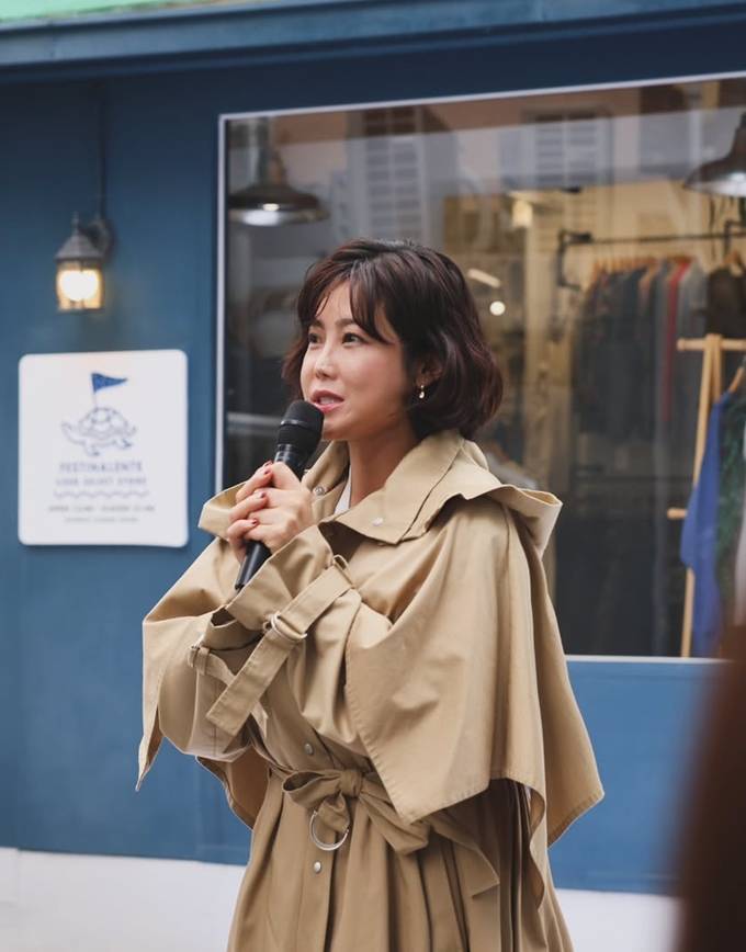 가수 겸 아티스트 솔비(권지안)가 아티스트 토크 현장에서 트렌치코트룩으로 예술가다운 감각적인 스타일을 선보였다.