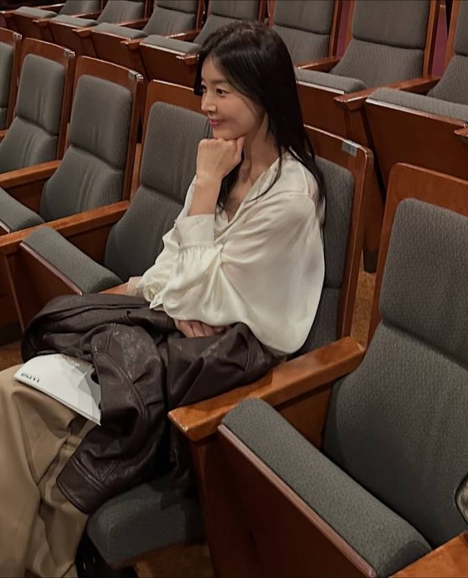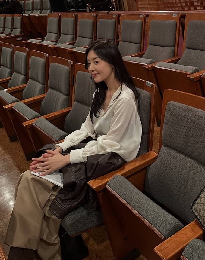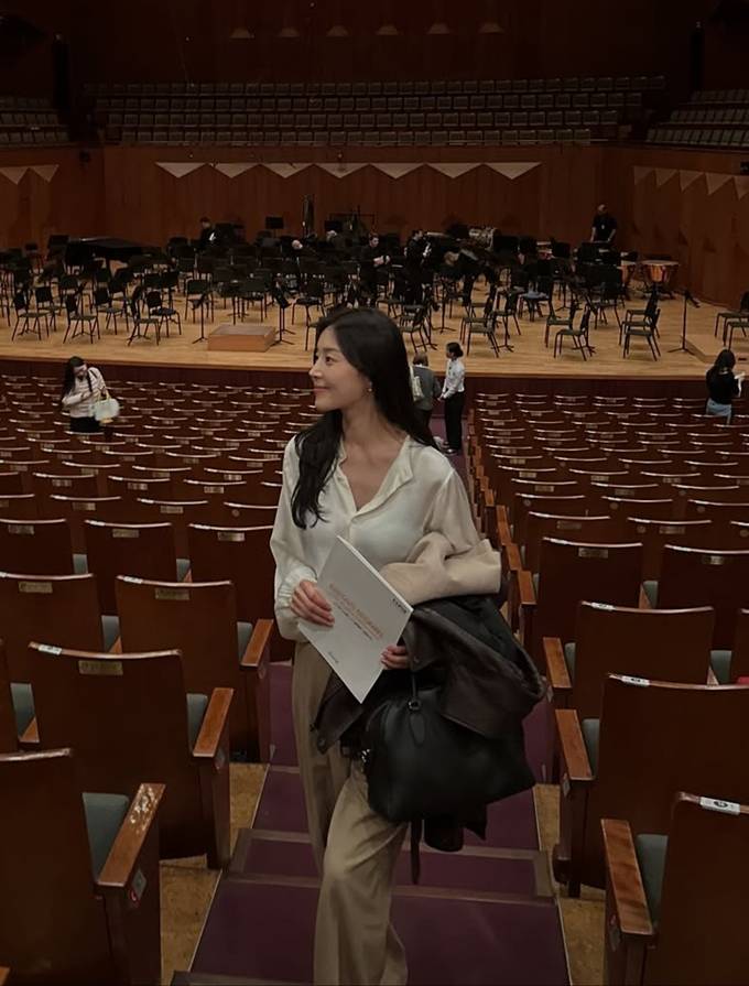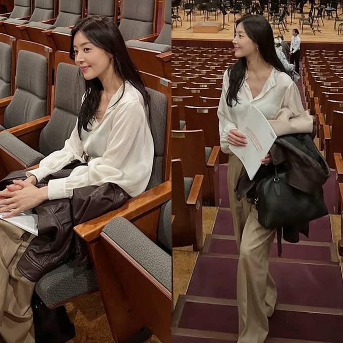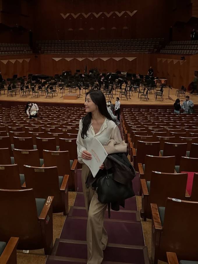공개한 사진에서 한지혜는 부드러운 아이보리 톤의 은은한 실크 셔츠에 베이지 컬러의 와이드 팬츠를 매치한 음악회 나들이룩으로 고급스럽고 여유로운 분위기를 연출했다.