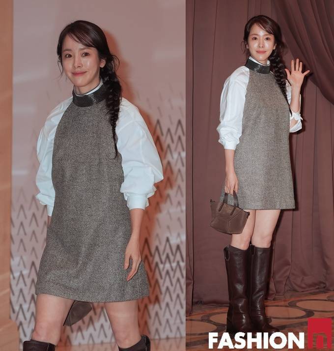 한지민은 이날 헤링본 터틀넥 원피스로 사랑스러운 매력을 연출했다.