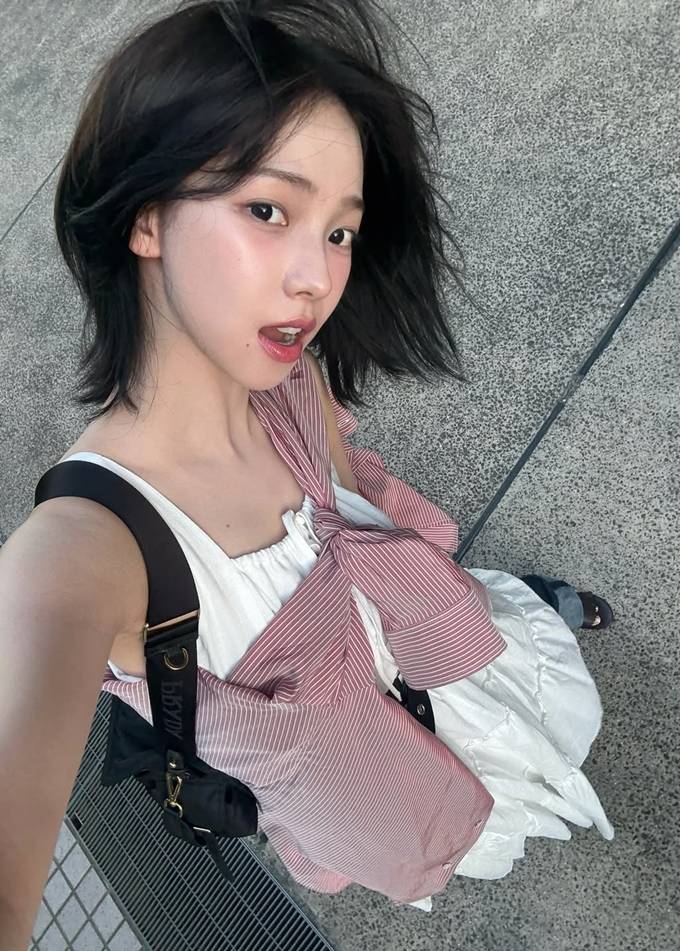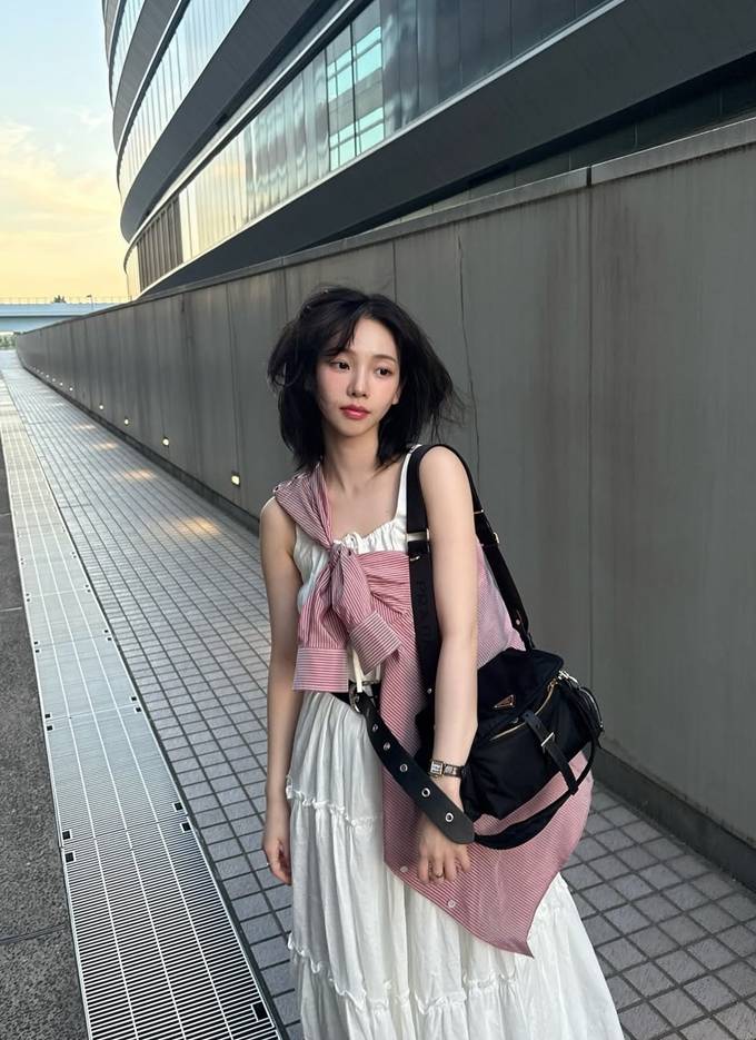 그룹 에스파의 카리나가 화이트 스모크 원피스룩으로 청순 여친미를 발산했다.